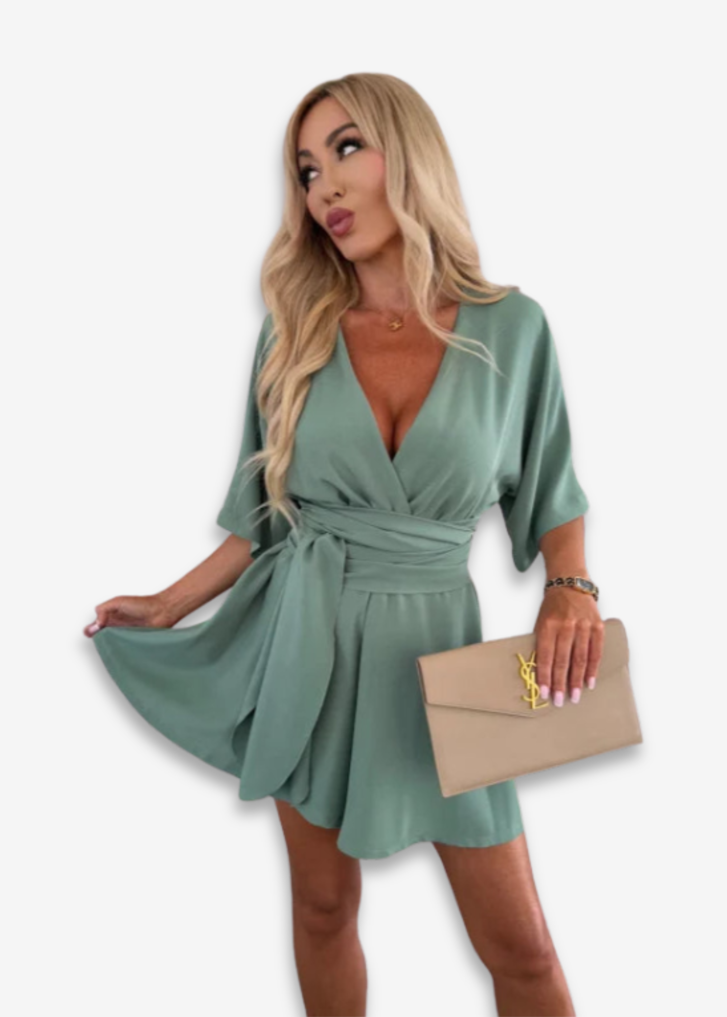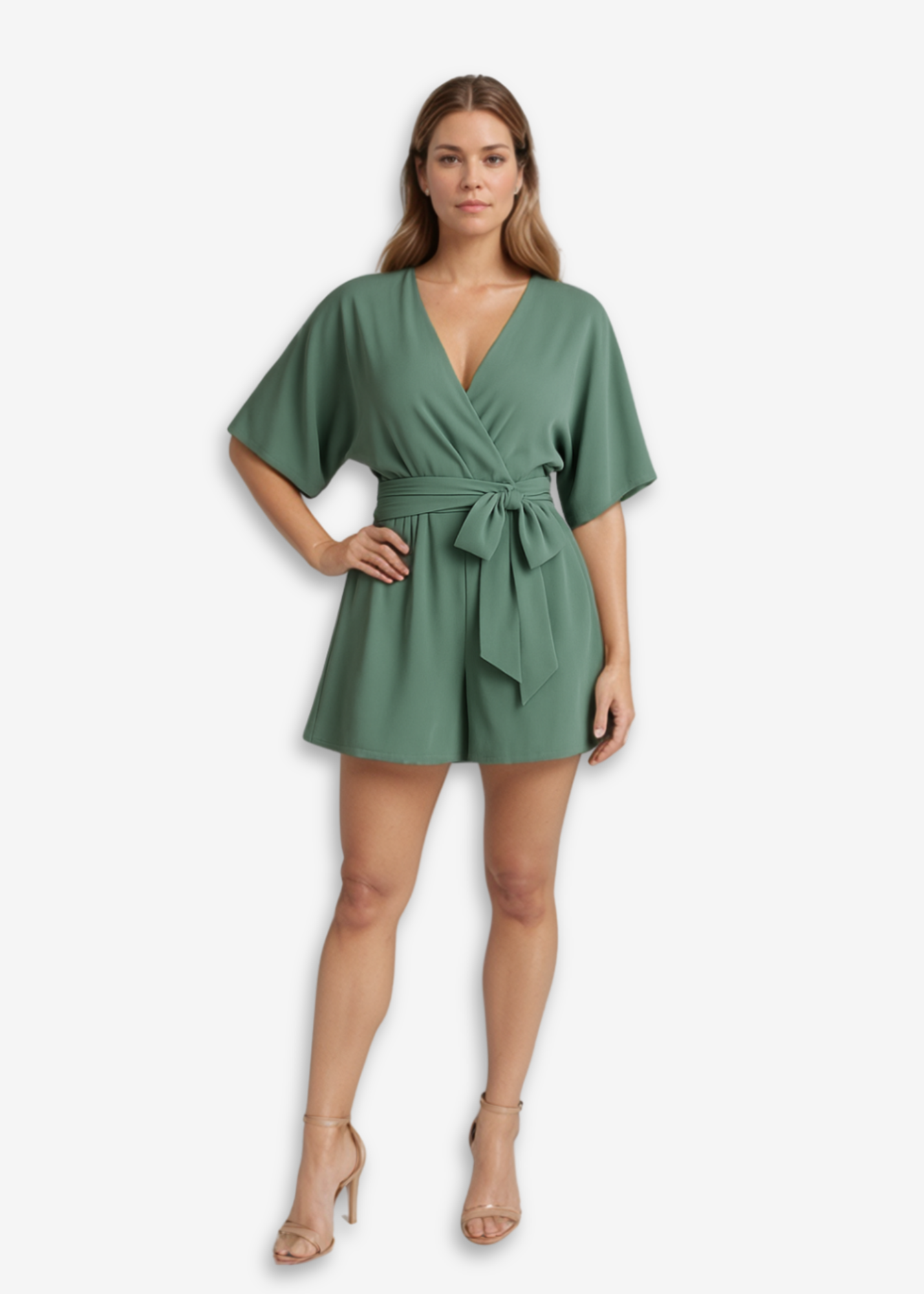 El elegante mono entallado aporta un toque fresco y chic a tu armario. Gracias a su caída fluida, cintura resaltada y sofisticado cinturón de lazo, este mono crea una silueta preciosa: perfecta para fiestas veraniegas, citas de brunch o una escapada urbana con estilo.