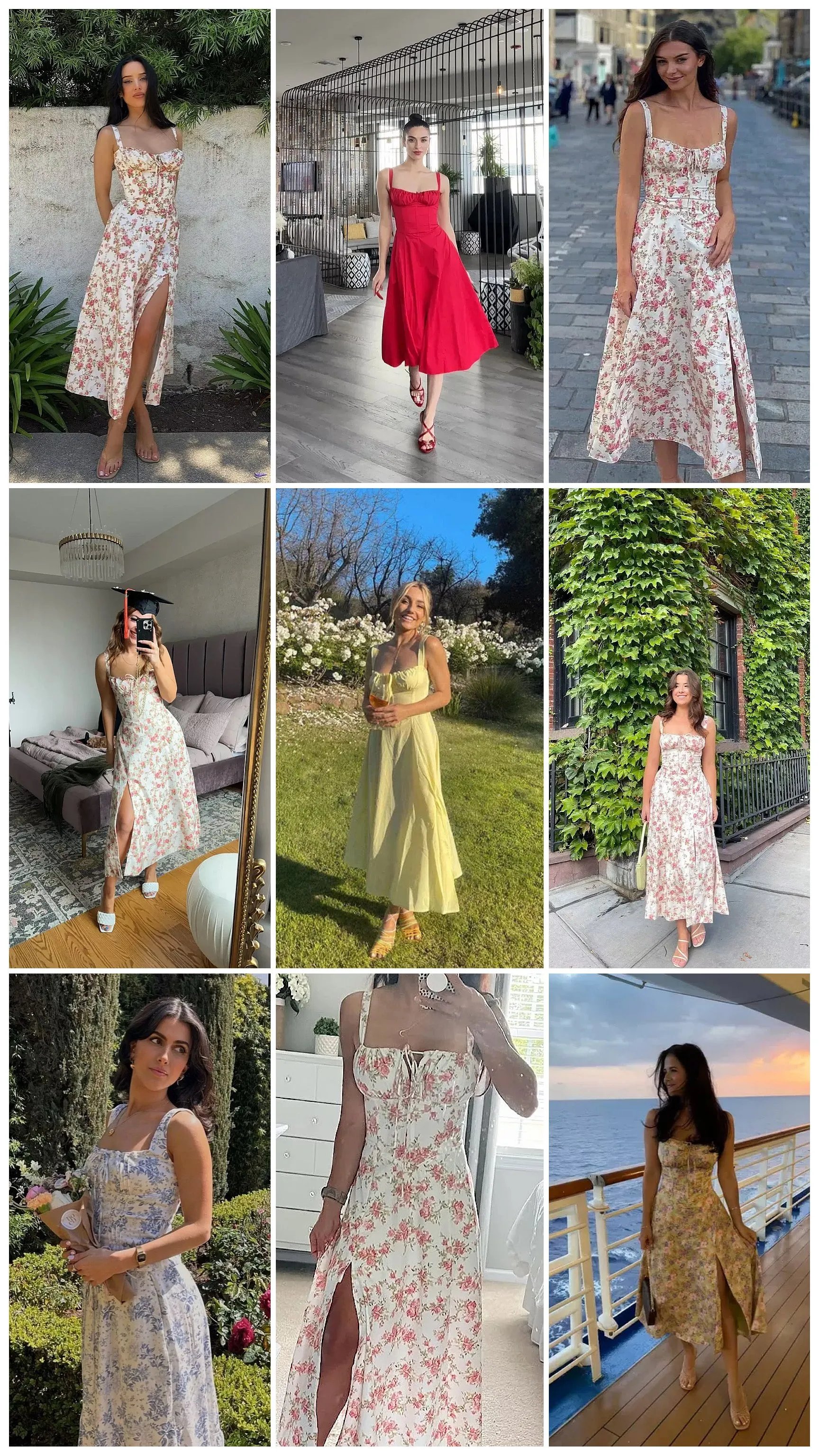 The fitted bustier top of our sundress creates a flattering silhouette, while the flared skirt flows beautifully for a feminine look that's both comfortable and stylish. The sweetheart neckline features soft cups and fitted with our incredible corsetry boning to snatch the waist for an amazing silhouette. It has a lace up back for pretty detailing, revealing for your desired fit.