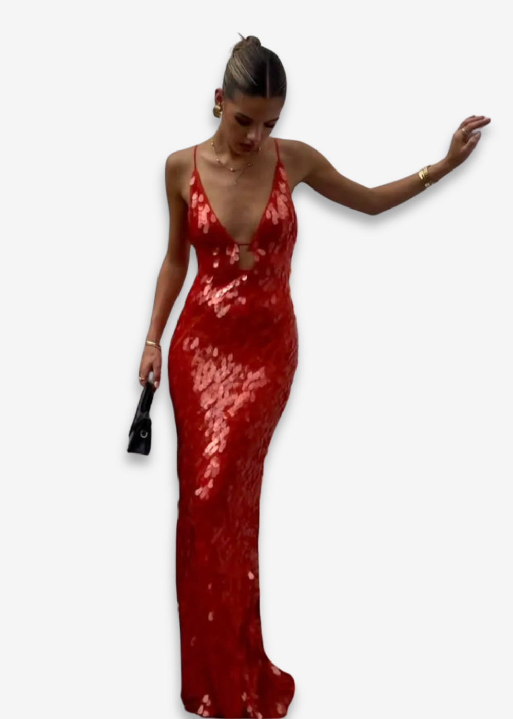 Haz una declaración deslumbrante con el Vestido Largo Sofía de Lentejuelas, diseñado para quienes aman brillar. Con una llamativa silueta sirena y un profundo escote en V, este vestido realza tu elegancia natural y asegura que todas las miradas se posen en ti. Ya sea para un evento nocturno glamuroso o una ocasión especial, Sofía es la elección perfecta para dejar una impresión duradera.